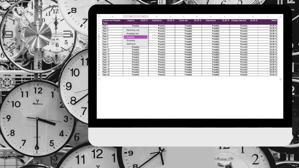 Excel spreadsheet templates for choosing your daily tasks effectively