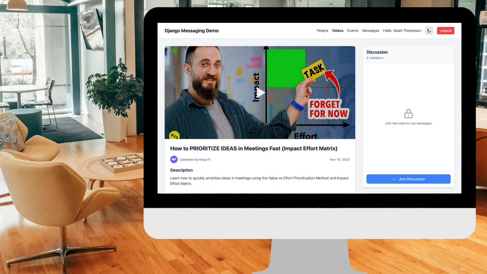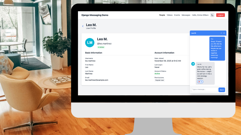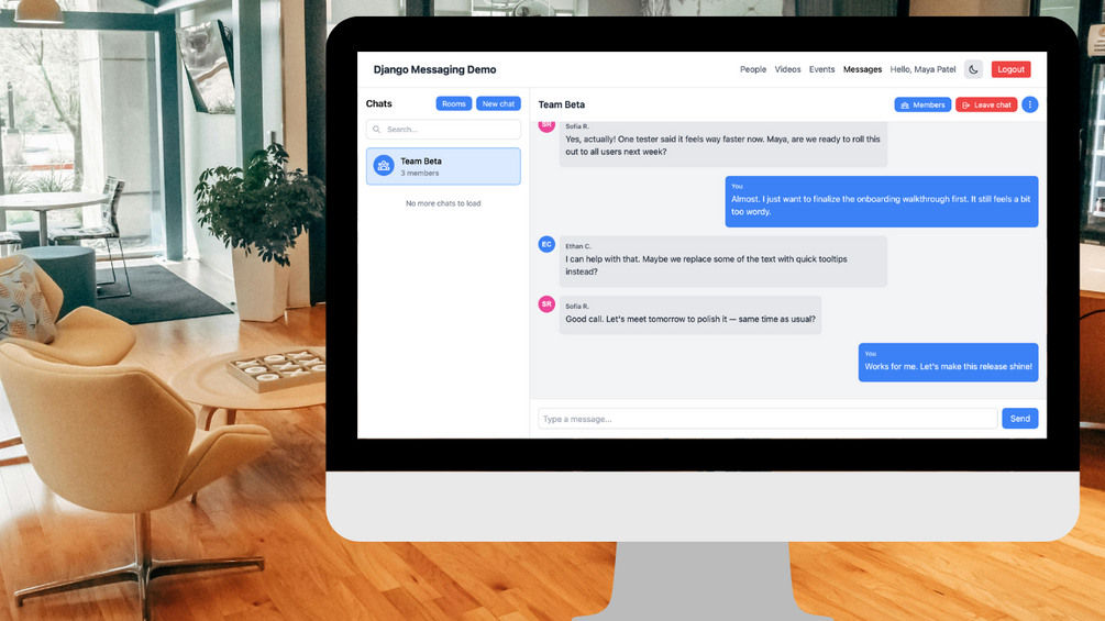 Django Messaging is a comprehensive, production-ready messaging solution that handles all the complexity for you. It's a lightweight, extensible Django app that provides real-time private messaging, group chats, and embeddable chat widgets that can be easily integrated into any Django project.