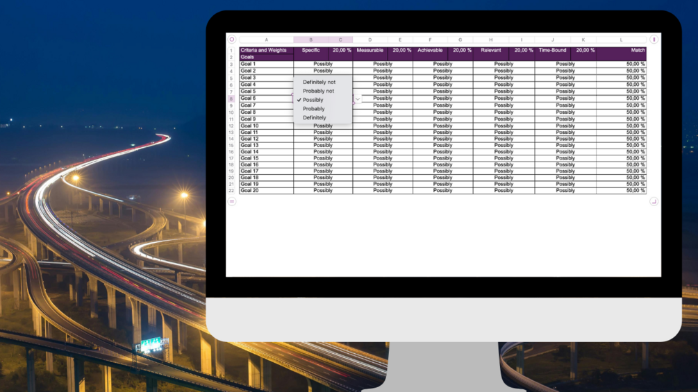 Excel spreadsheet templates for choosing your goals effectively